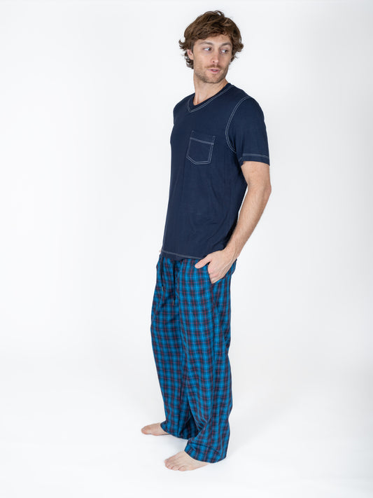 Creaciones Parisinas, Pijama caballero, pantalón cuadros, playera manga corta lisa.