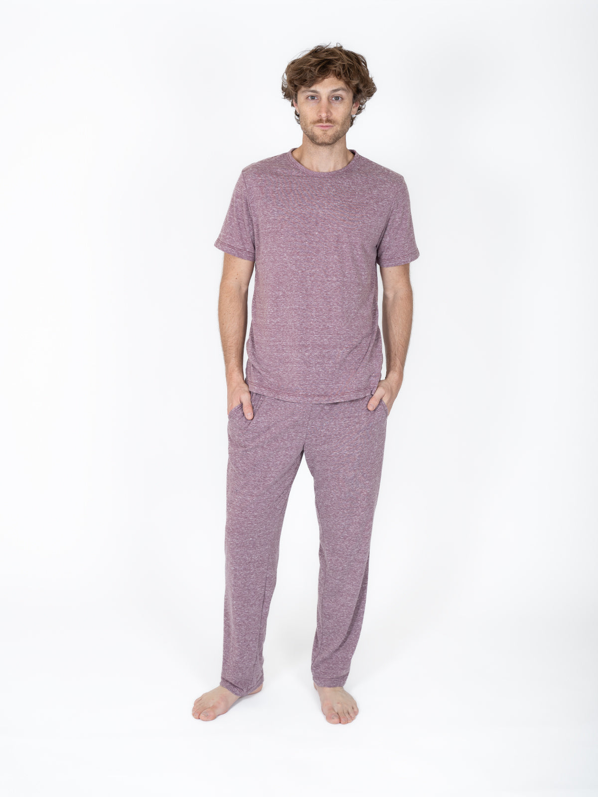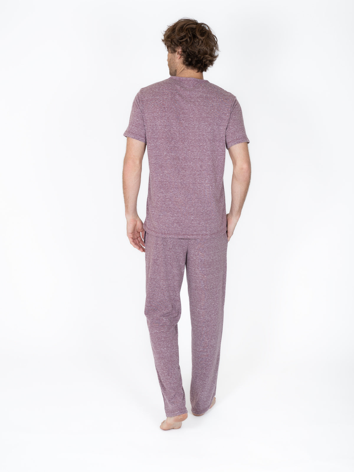 Este pijama para caballero de Creaciones Parisinas combina comodidad y estilo con su diseño en color vino. Con pantalón y playera de manga corta, presenta un cuello redondo que ofrece un ajuste relajado y fresco, ideal para descansar con total comodidad. Perfecto para quienes buscan un conjunto práctico y elegante para las noches cálidas.